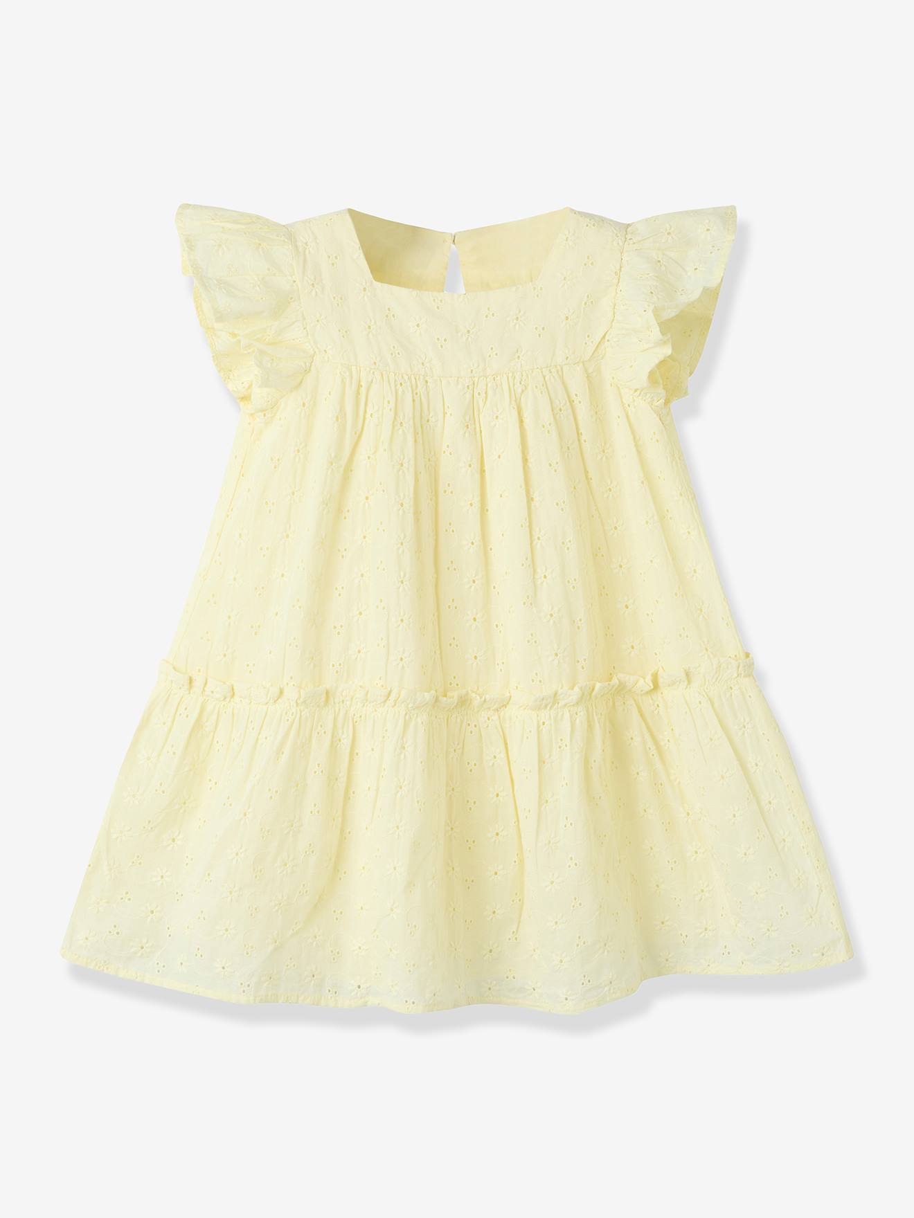 Sommerkleid mit Lochstickerei & Volant Mädchen NAME IT hellgelb Gr. 122