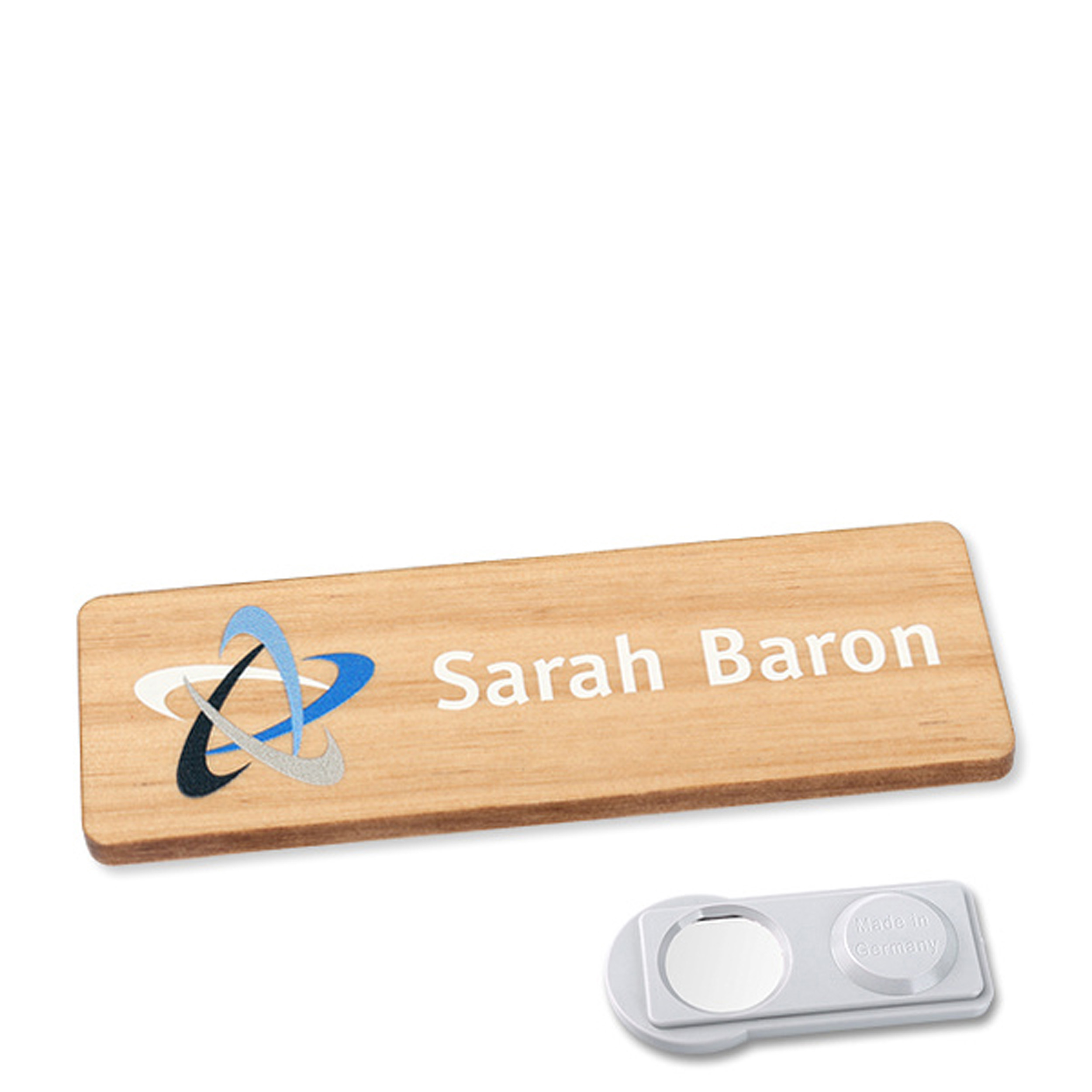 Namensschild aus Holz, timberline "complete-print" 76,3 x 25 mm | smag Magnet, braun