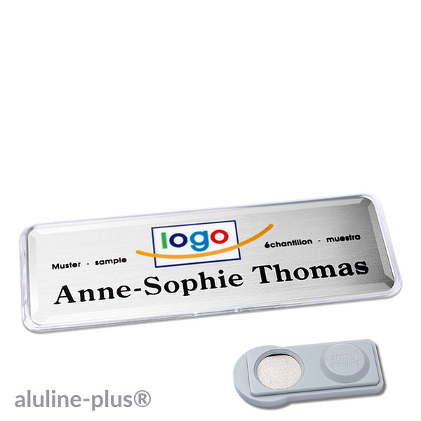 10 Namensschilder aluline-plus alu-print Magnet 76 x 25 mm | silber | smag Magnet, Metall