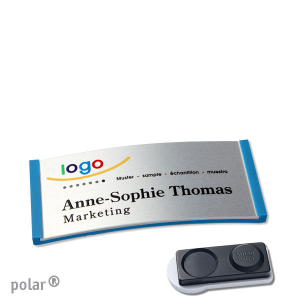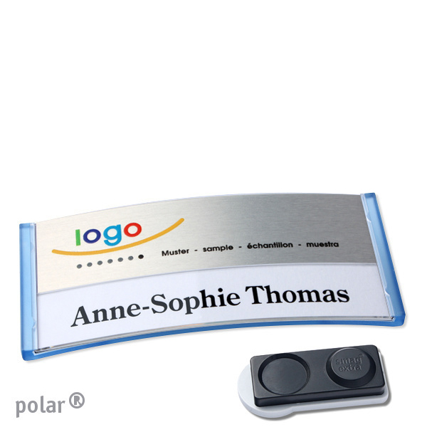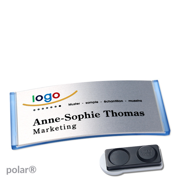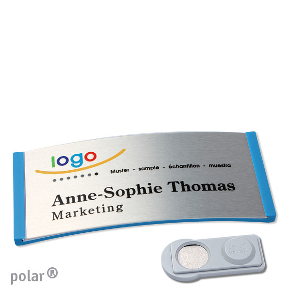 10 Namensschilder polar alu-complete magnet 74 x 34 mm | transluzent|blau | silber | smag Magnet, extra stark, Kunststoff