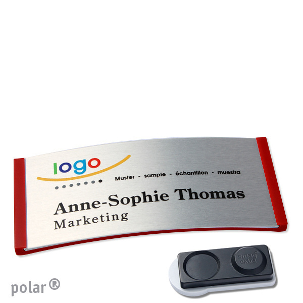 10 Namensschilder polar alu-complete magnet 74 x 34 mm | rot | silber | smag Magnet, extra stark, Kunststoff