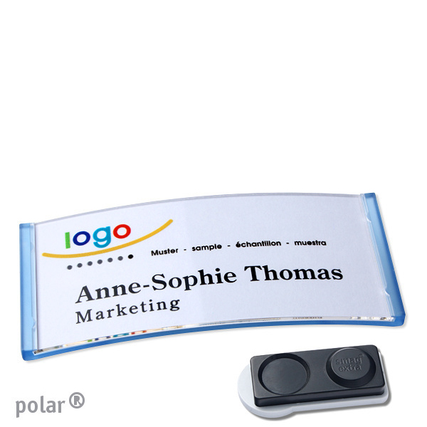 10 Namensschilder polar quick-print Magnet 74 x 34 mm | smag Magnet, extra stark | transluzent|blau, Kunststoff