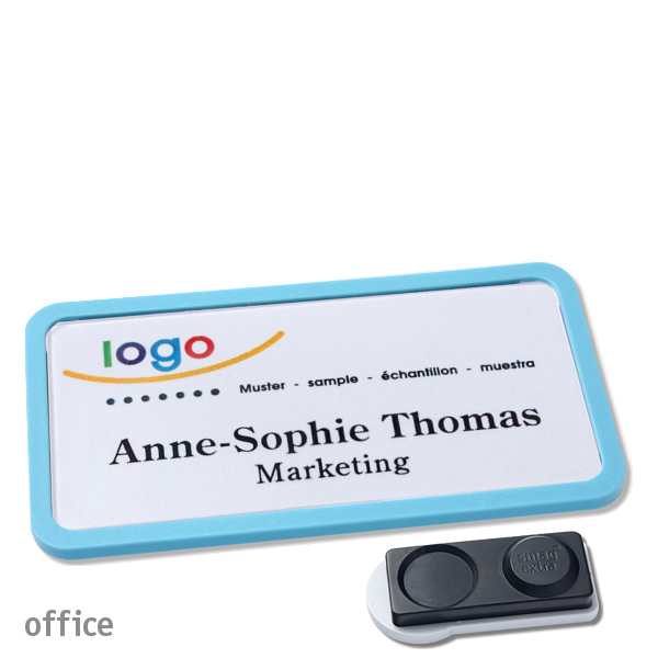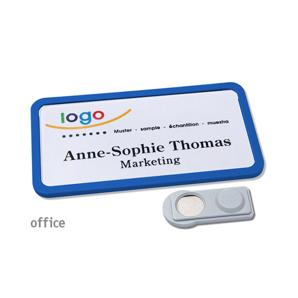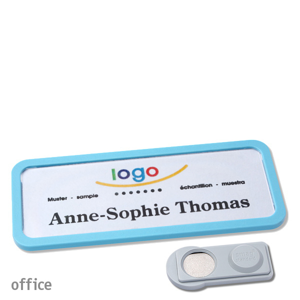10 Namensschilder OFFICE, magnetisch 75 x 37 mm | blau | smag Magnet, Kunststoff