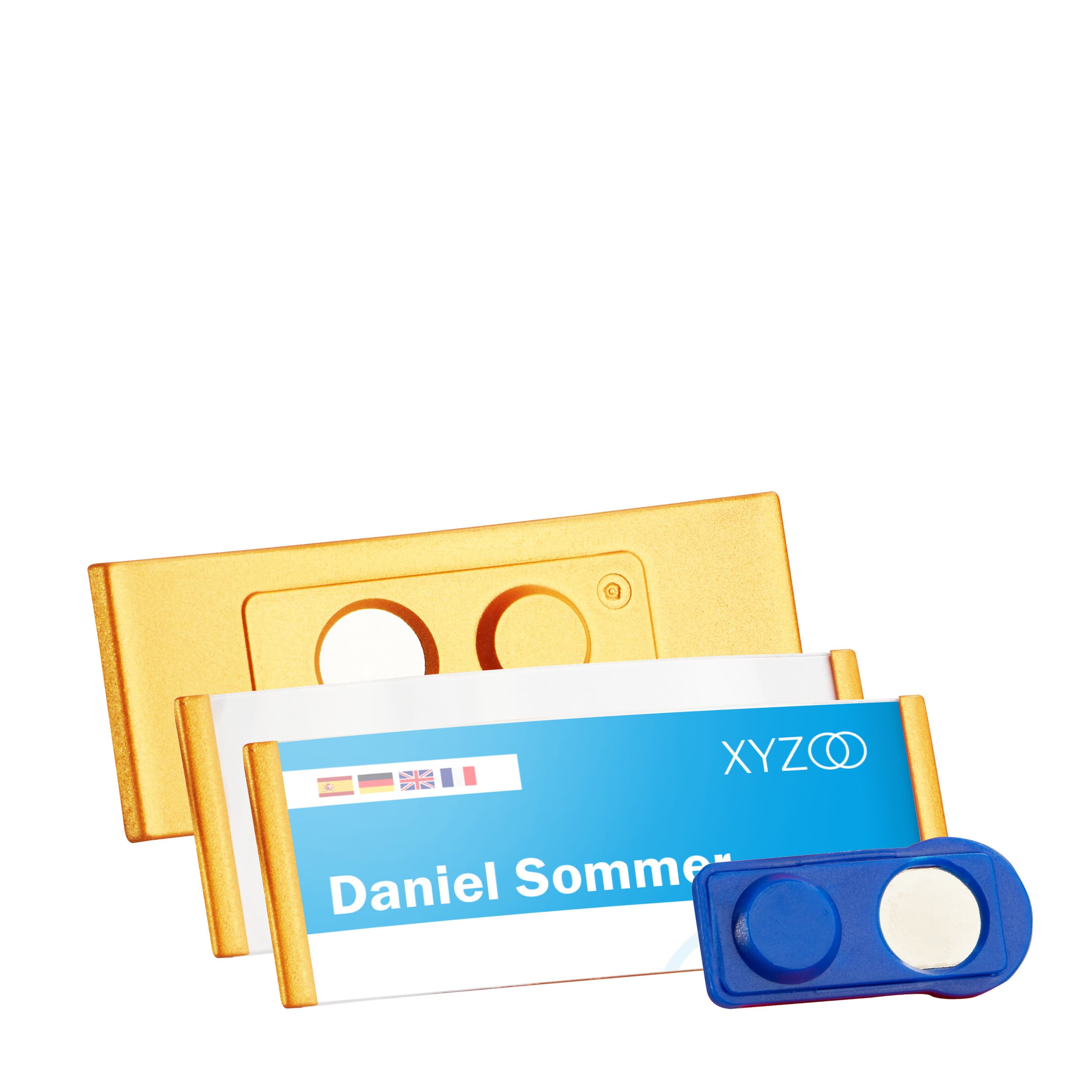 Aluminium Magnettafeln - Namensschilder - Doppelmagnetschilder - Magnetisch - Namensschild mit Kartensteckplatz - Anodisiert - Transparent - Gold -...
