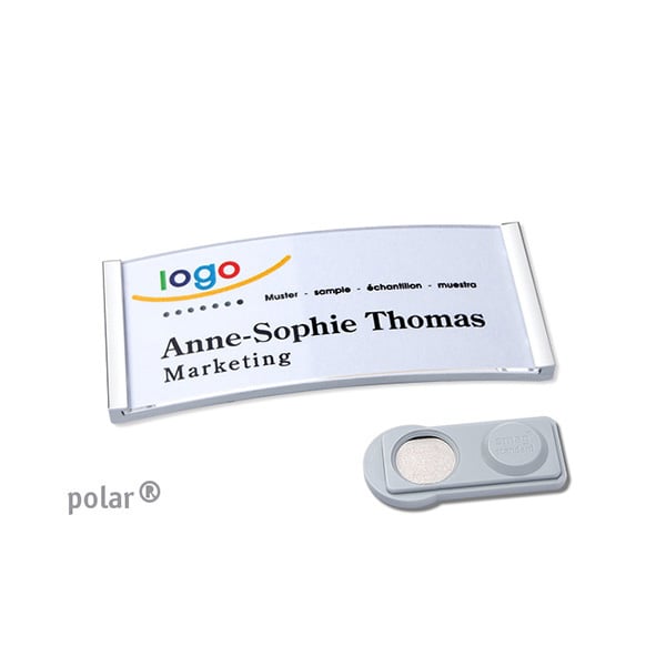 10 Namensschilder polar , magnetisch 65 x 30 mm | chrom | smag Magnet, Kunststoff