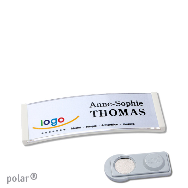 10 Namensschilder polar , magnetisch 74 x 34 mm | transparent | smag Magnet, Kunststoff