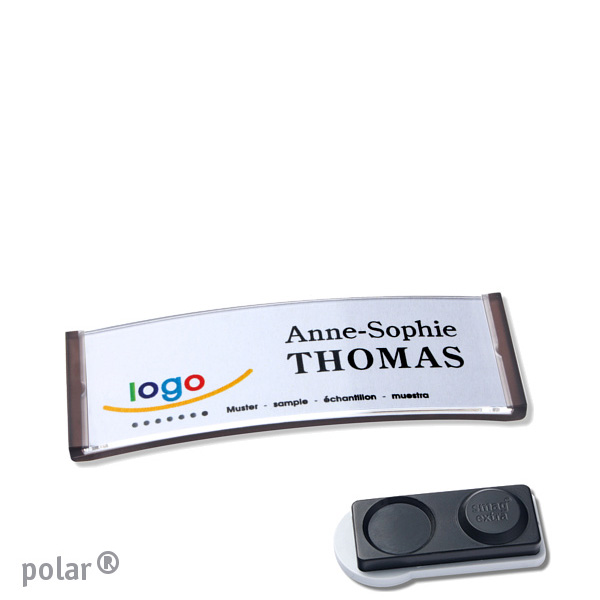 10 Namensschilder polar , magnetisch 64 x 22 mm | transluzent|anthrazit | smag Magnet, extra stark, Kunststoff