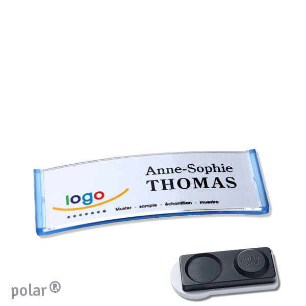 10 Namensschilder polar , magnetisch 64 x 22 mm | transluzent|blau | smag Magnet, extra stark, Kunststoff