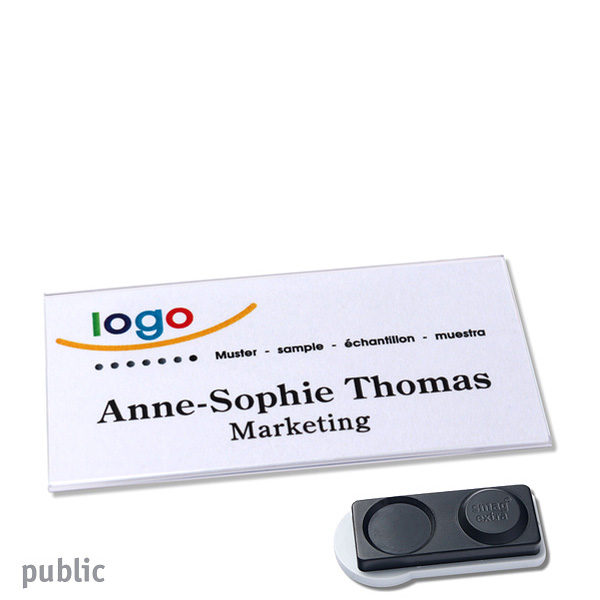 10 Namensschilder PUBLIC, magnetisch 75 x 37 mm | smag Magnet, extra stark, Hart-PVC, transparent