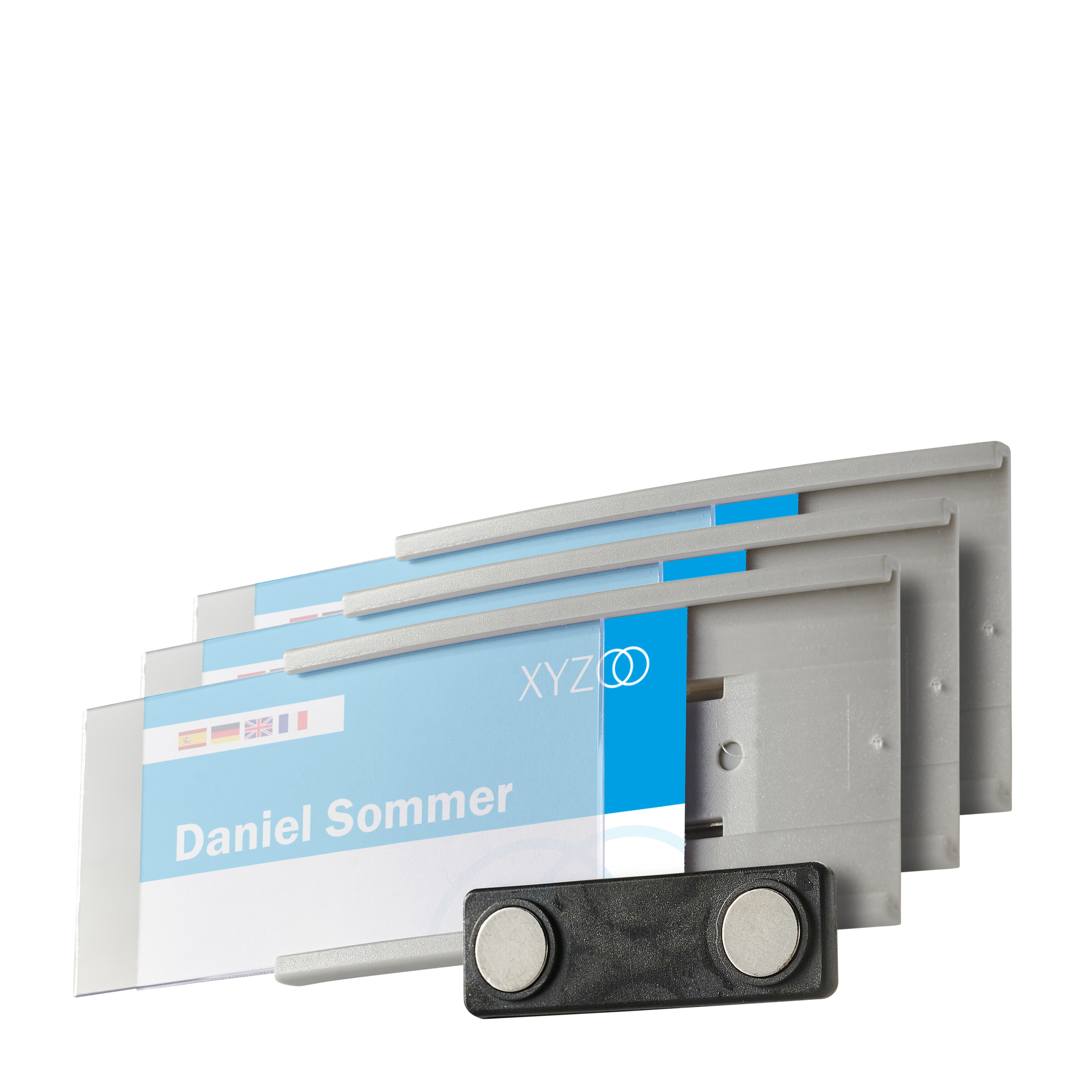 10 Namensschilder MEET, magnetisch hellgrau, Kunststoff