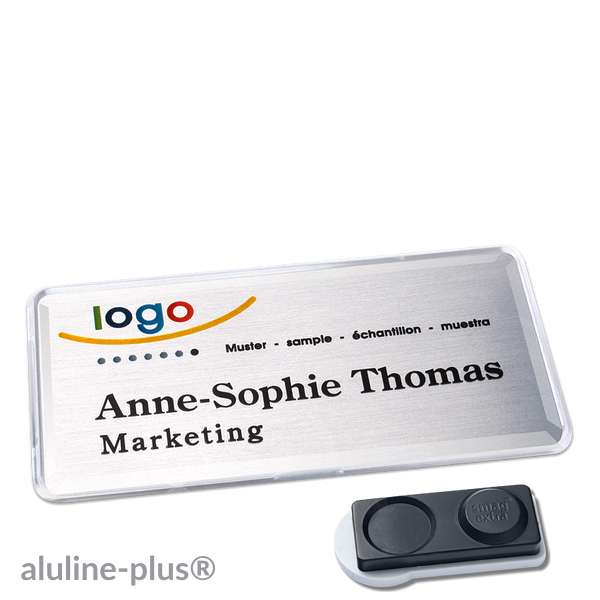 10 Namensschilder aluline-plus , magnetisch 76 x 38 mm | silber | smag Magnet, extra stark, Metall