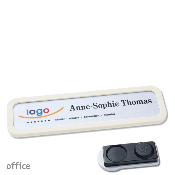10 Namensschilder OFFICE, magnetisch 75 x 37 mm | hellgrau | smag Magnet, extra stark, Kunststoff