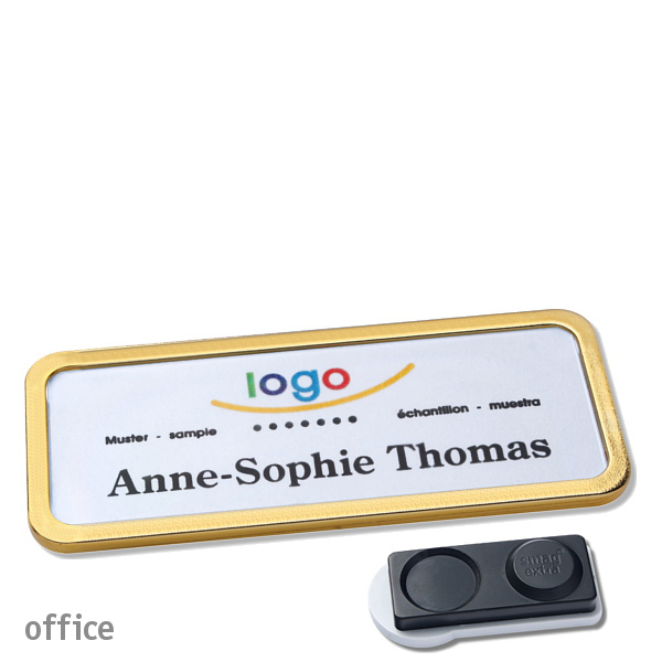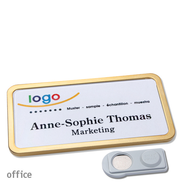 10 Namensschilder OFFICE, magnetisch 75 x 37 mm | gold | smag Magnet, Kunststoff