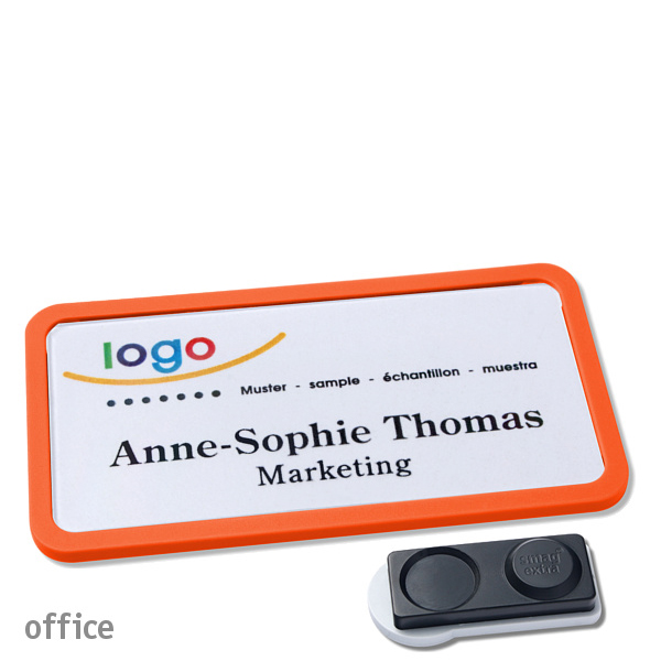 10 Namensschilder OFFICE, magnetisch 75 x 37 mm | orange | smag Magnet, Kunststoff