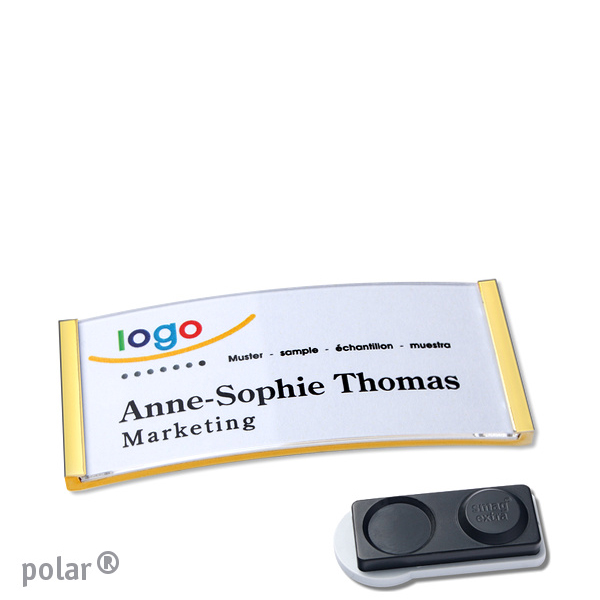 10 Namensschilder polar , magnetisch 74 x 34 mm | gold | smag Magnet, extra stark, Kunststoff