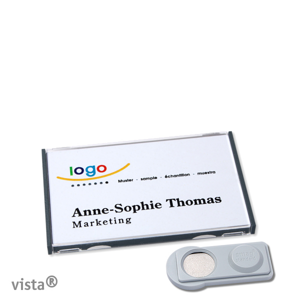 10 Namensschilder VISTA, magnetisch 60 x 37 mm | anthrazit | smag Magnet, Kunststoff
