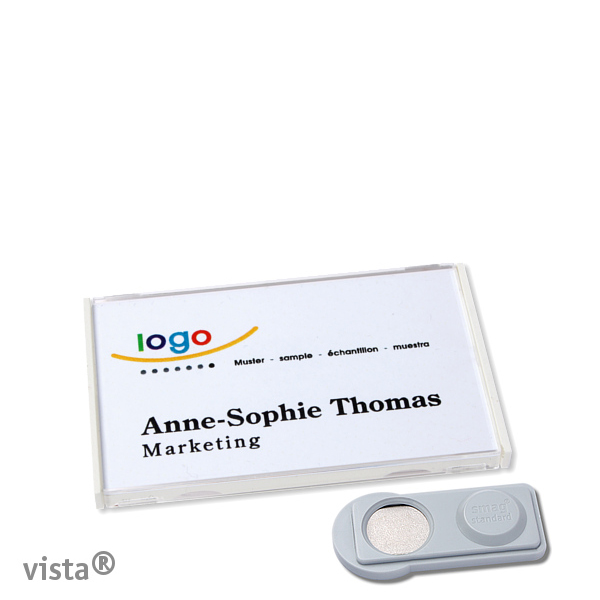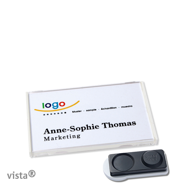 10 Namensschilder VISTA, magnetisch 60 x 37 mm | weiß | smag Magnet, Kunststoff