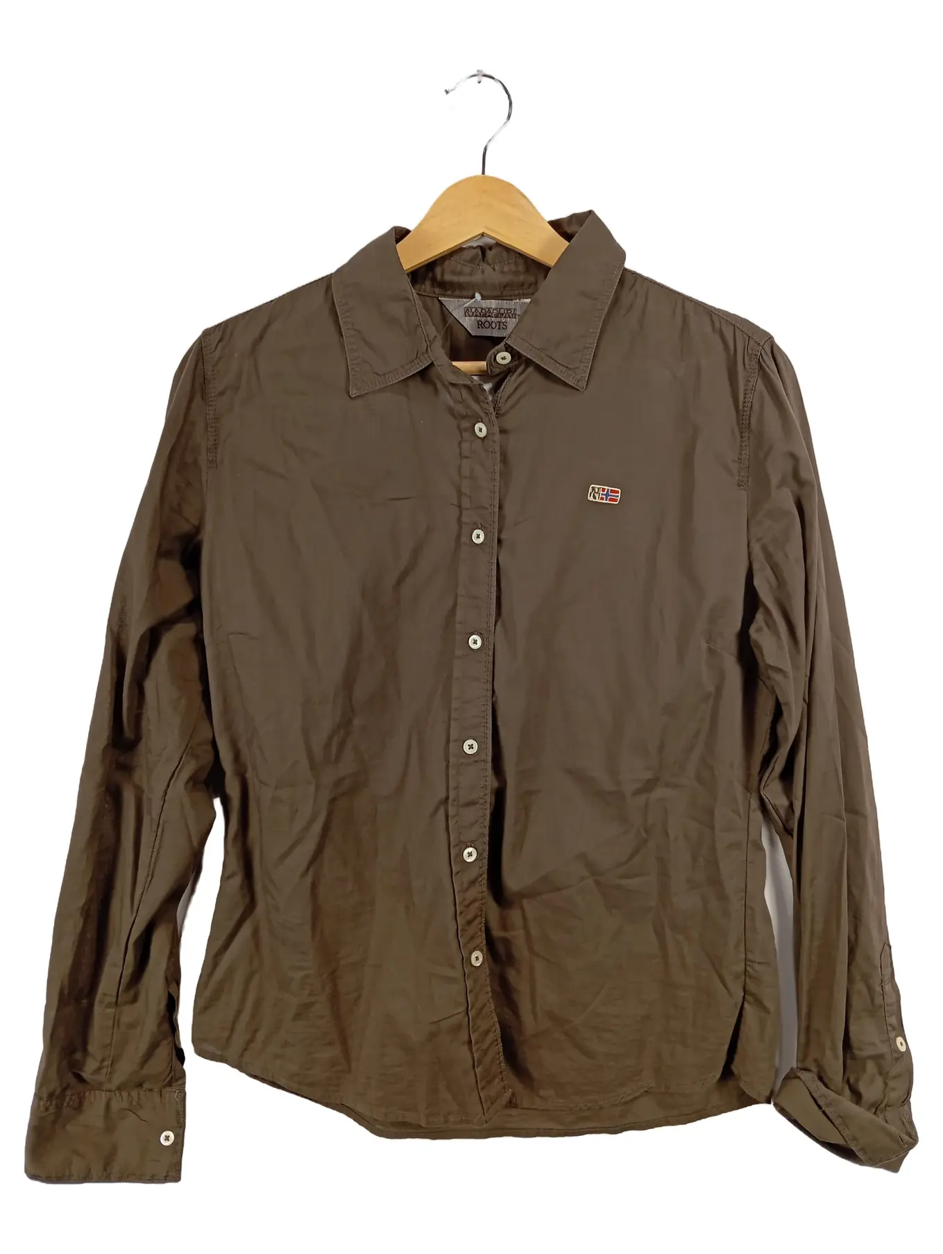 NAPAPIJRI Hemdbluse Damen Gr. L Braun Langarm Baumwolle Casual