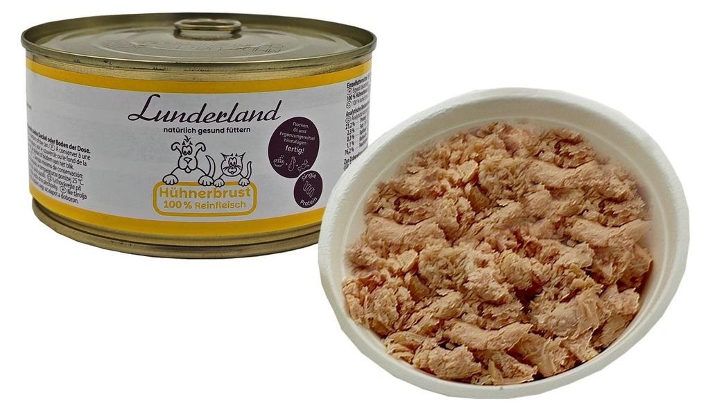 Lunderland Hühnerbrust 300g Reinfleisch Hundefutter Nassfutter 100 % Hühnerfleisch für Hunde und Katzen