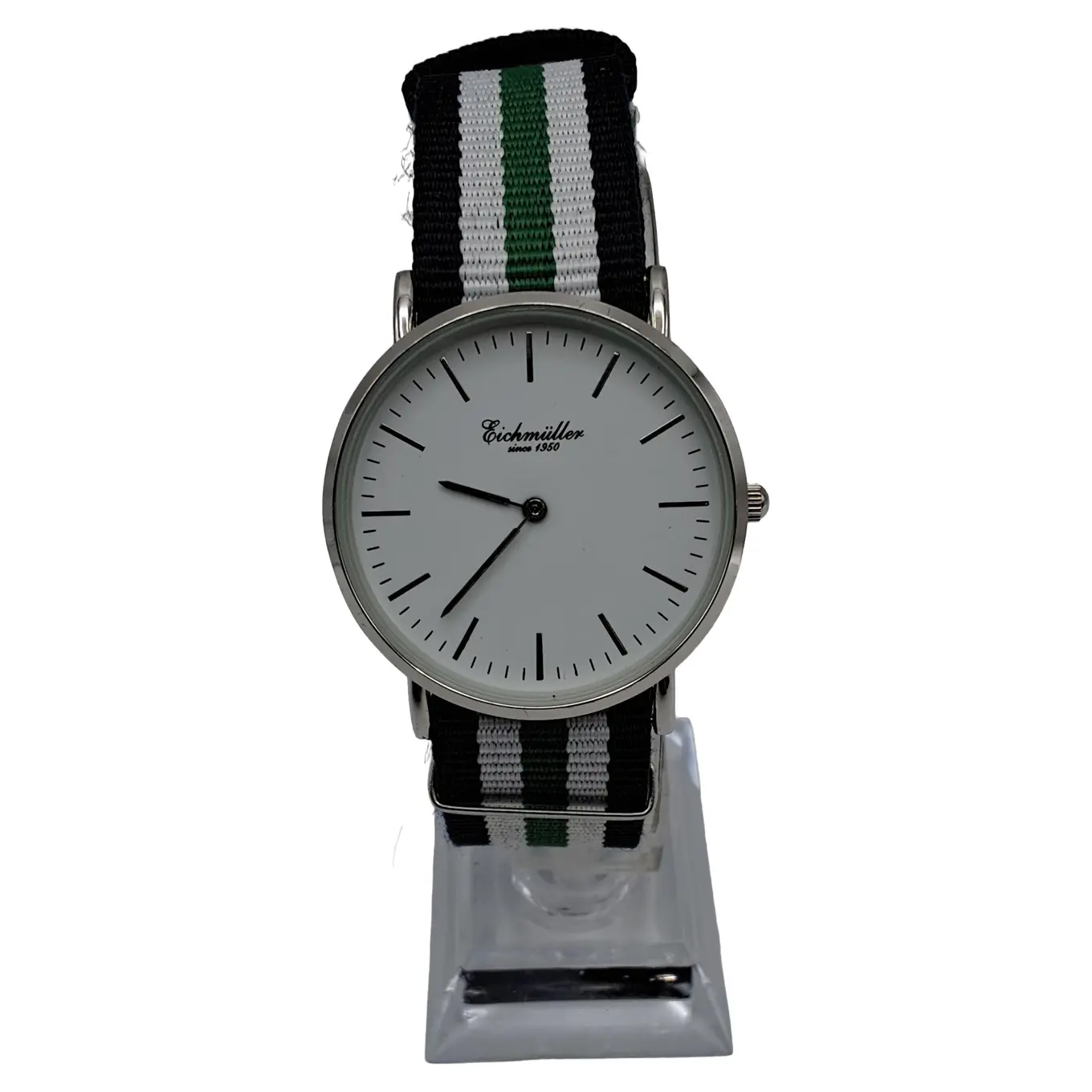 EICHMÜLLER Armbanduhr Minimalistisch NATO-Armband Schwarz Weiß Grün since 1950