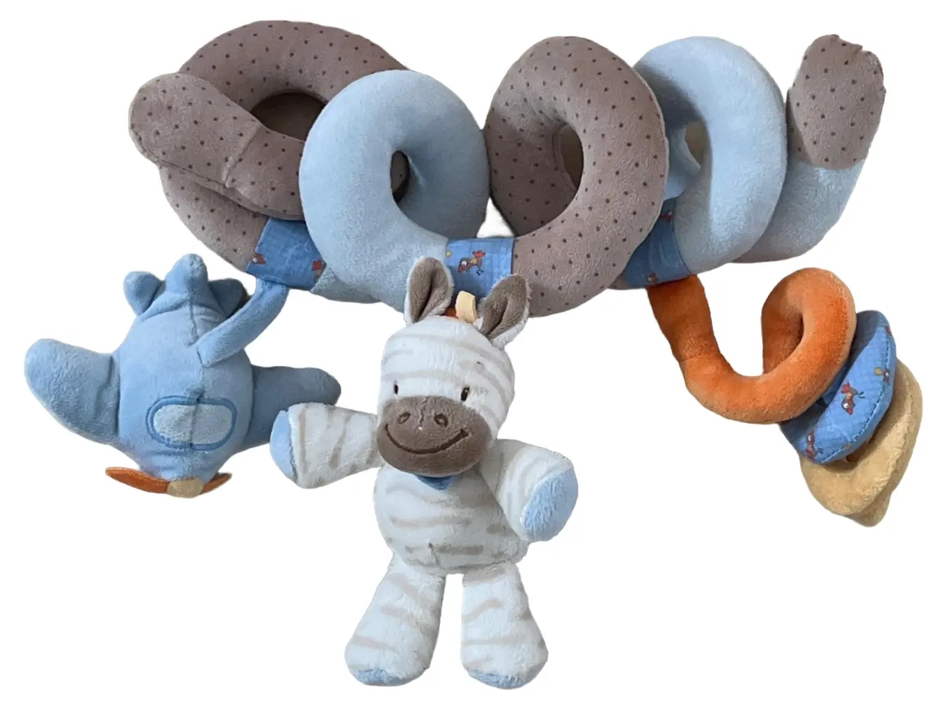 NATTOU Greifling Spielspirale Zebra Elefant Punkte Blau Polyester 19cm