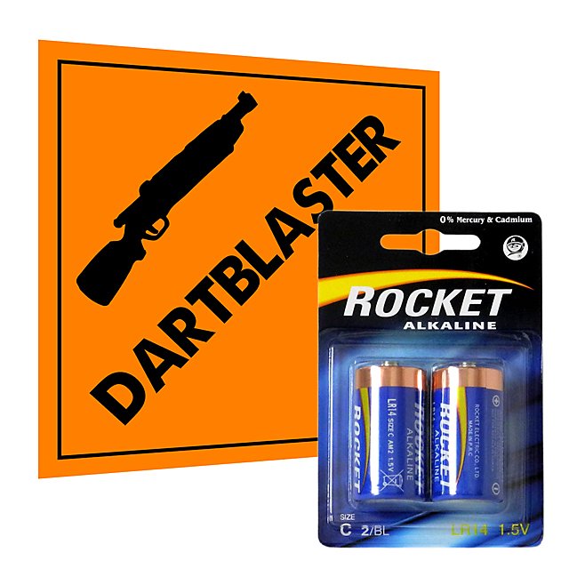 Pack de 2 piles alcalines C Rocket pour blaster et jouets - par exemple NERF Rapidstrike, Nitron
