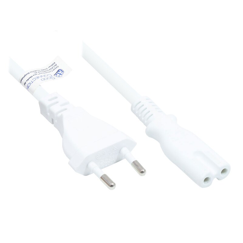 InLine Netzkabel, Netzstecker auf Euro 8 C7 Stecker, weiß, 1,0m