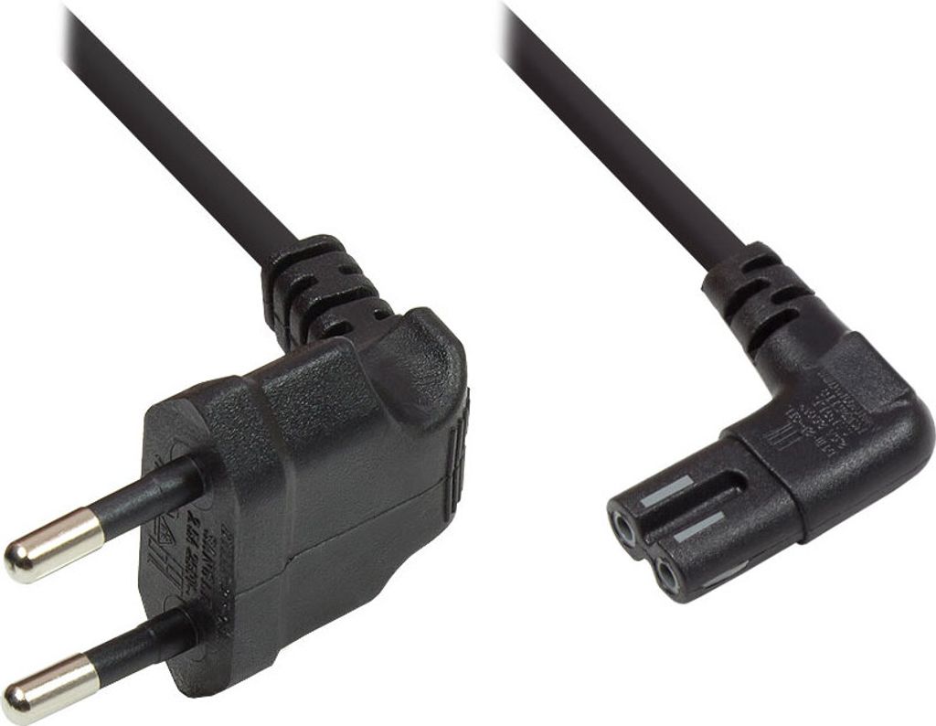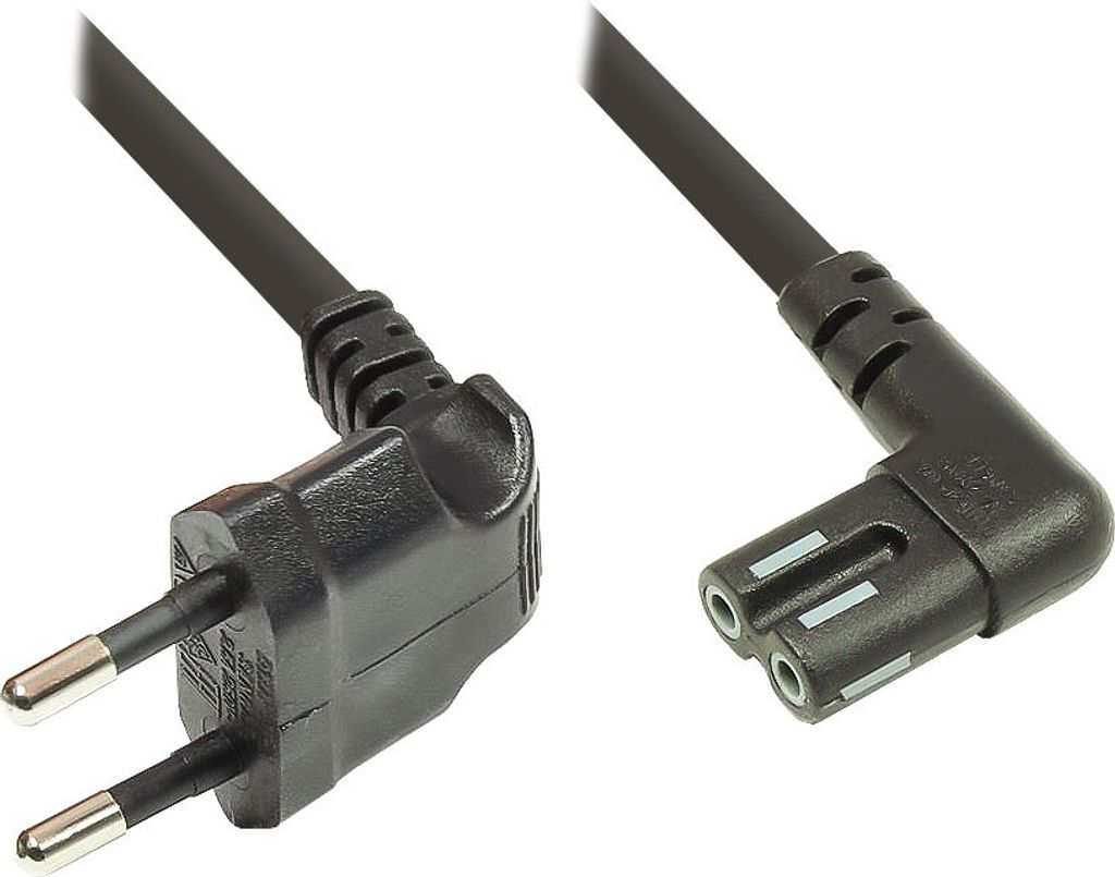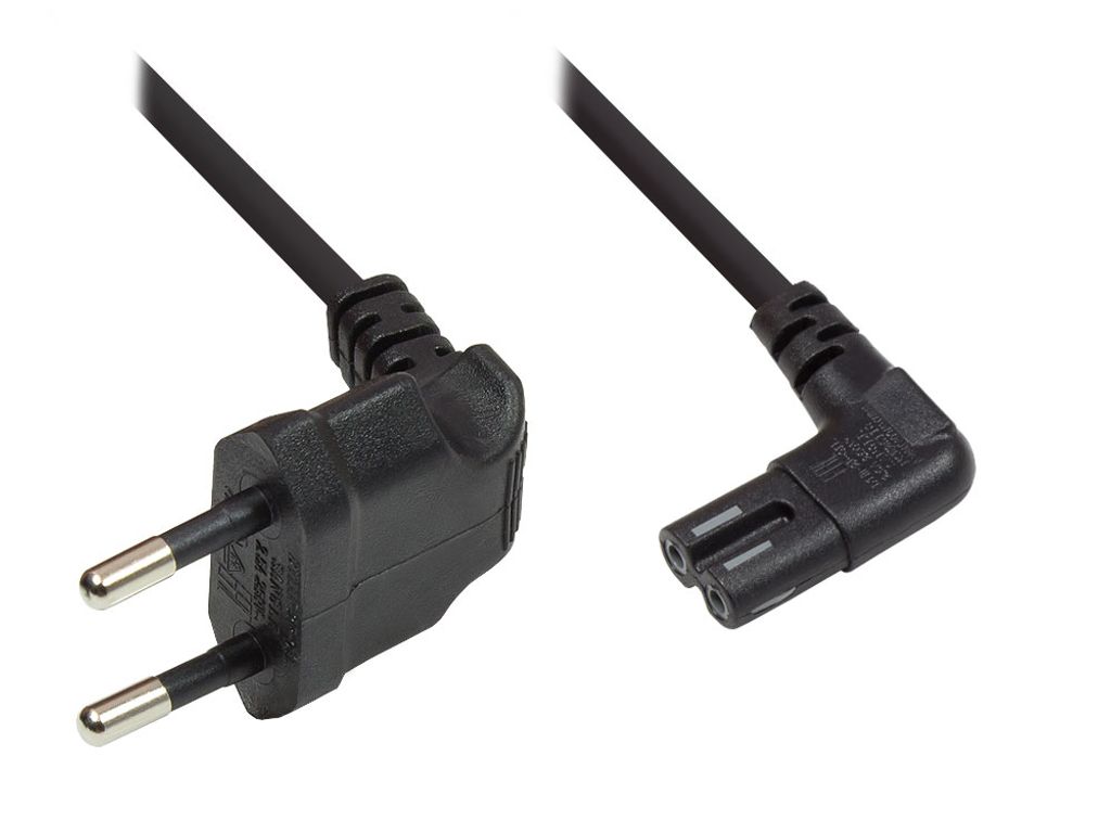 Euro-Netzkabel, Netzstecker an Euro 8 Buchse, beidseitig 90° abgewinkelt, schwarz, 2m, Good Connections