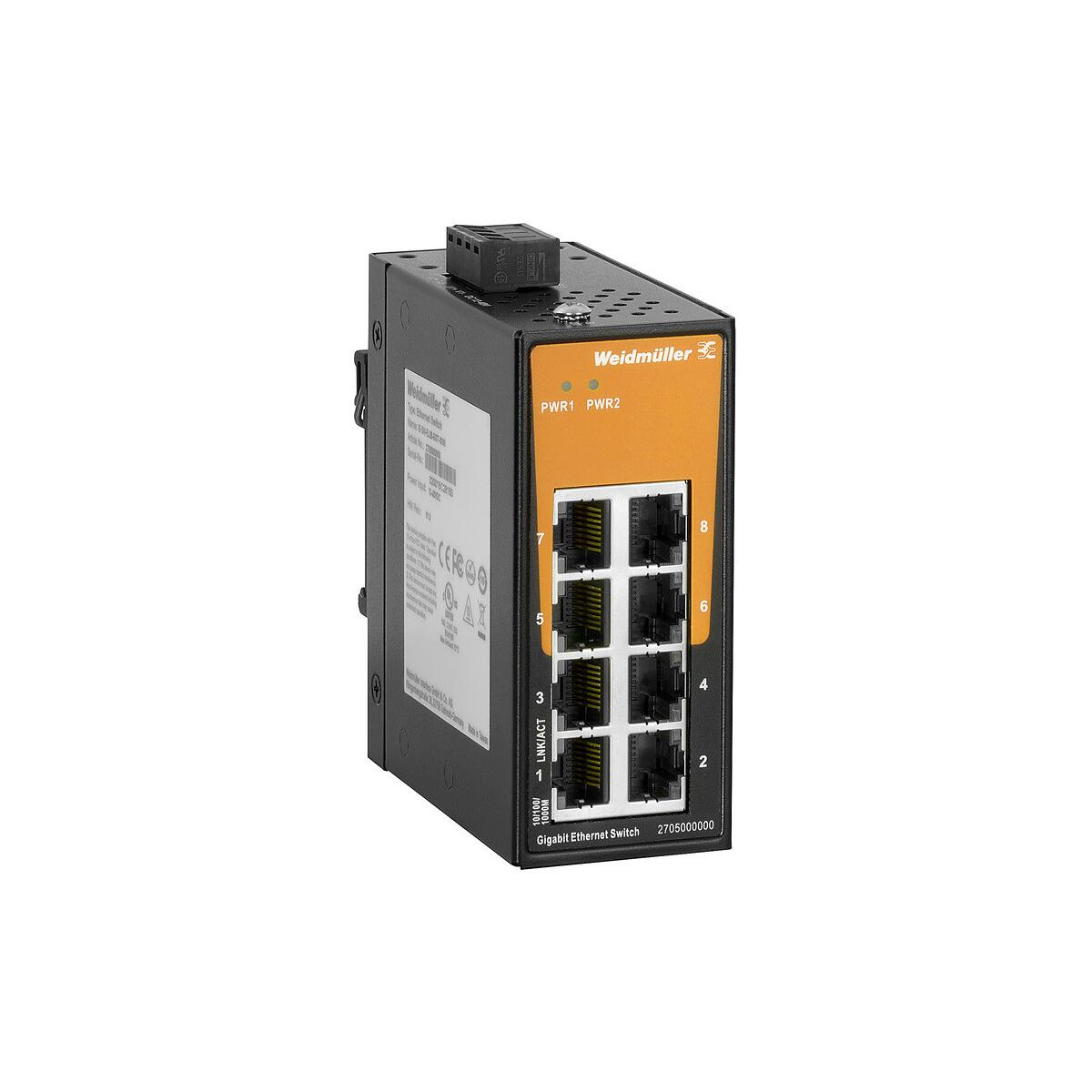 Weidmüller IE-SW-EL08-8GT-MINI Netzwerk-Switch, unmanaged, Gigabit Ethernet, 8x RJ45, IP30, -40 °C - 75 °C (2705000000)
