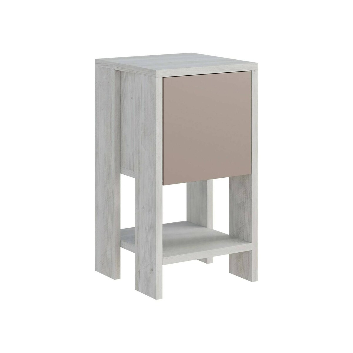 Nachttisch Draco, Niedrige Kommode, Tisch, Multifunktionaler Nachttisch, 30x30h55 cm, Weiß und Taupe