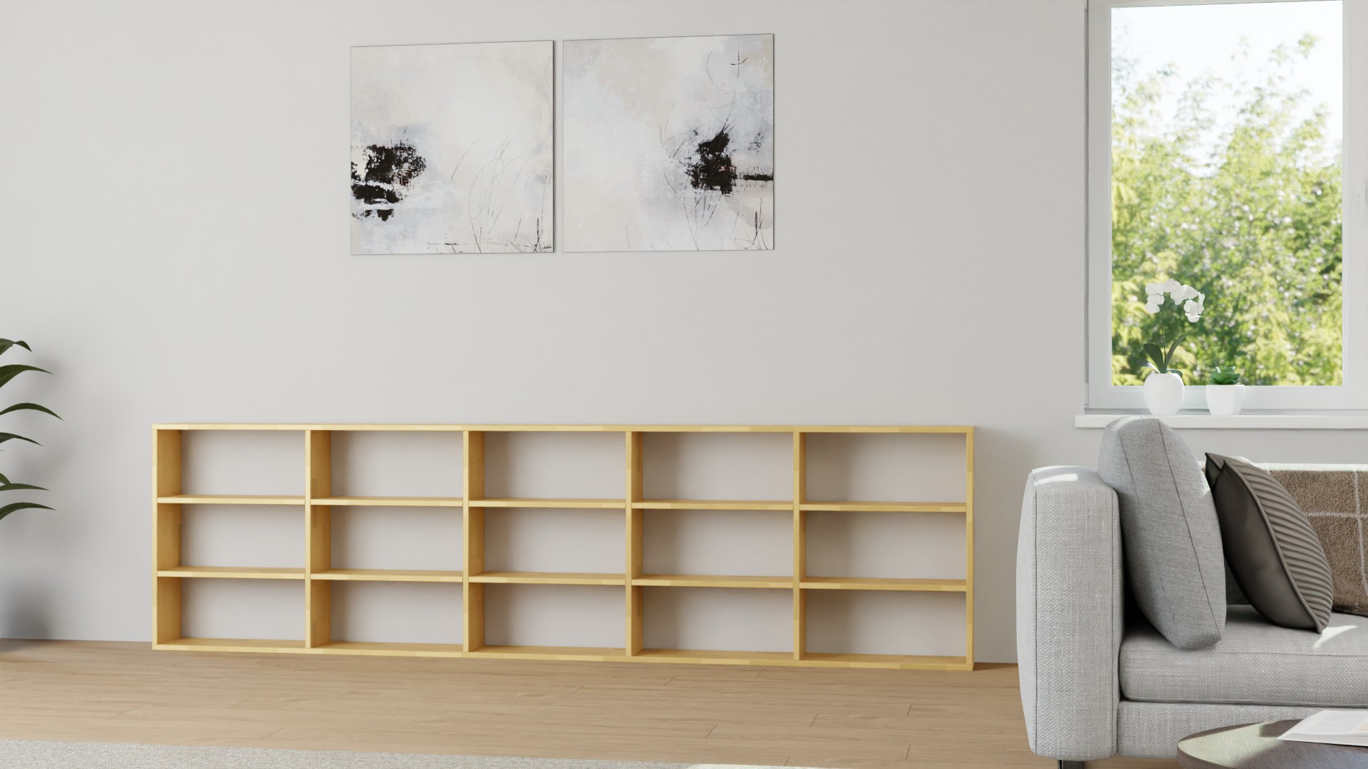 Niedriges Bücherregal - Kommode mit vielen Optionen Buche