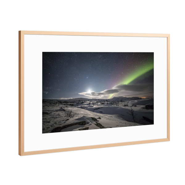 Poster mit Rahmen Kupfer "Light in the Night" artboxONE - Natur - Mondlicht,Nordlicht,Winterlandschaft,Himmel,Sky
