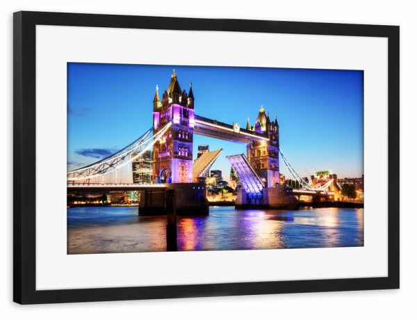 Poster mit Rahmen schwarz "Tower Bridge in London, the UK. Night lights at late sunset" artboxONE - Städte,Städte / London,Reise