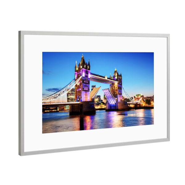 Poster mit Rahmen Silber "Tower Bridge in London, the UK. Night lights at late sunset" artboxONE - Städte,Städte / London,Reise