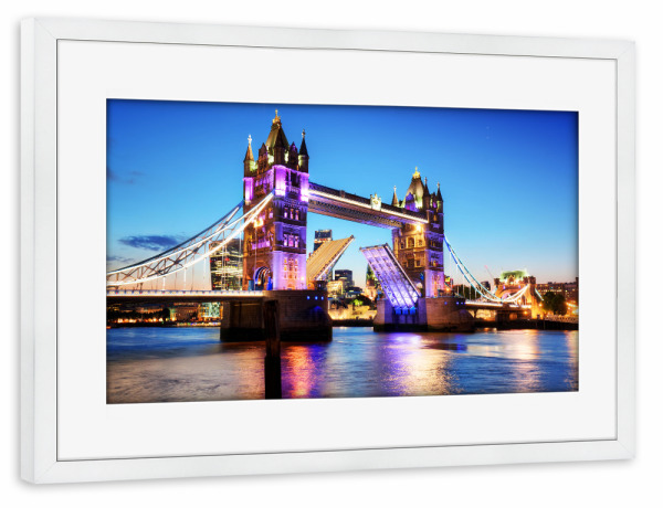 Poster mit Rahmen weiß "Tower Bridge in London, the UK. Night lights at late sunset" artboxONE - Städte,Städte / London,Reise