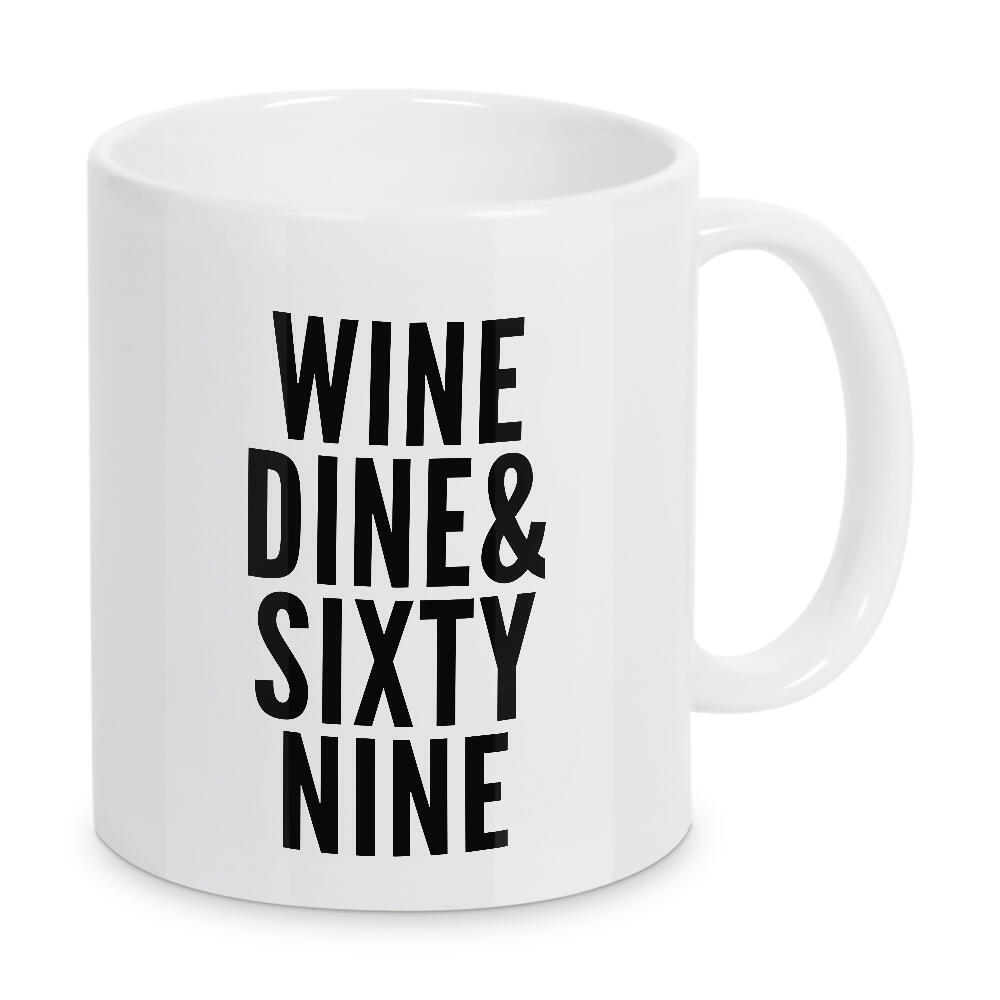 Tasse "Wine, Dine" artboxONE - Typografie,Schwarzweiß,Männer,Essen & Trinken / Alkohol - Männlich,Männer,Jungen,Wein,Wein,Trinken,Sex,One night stand