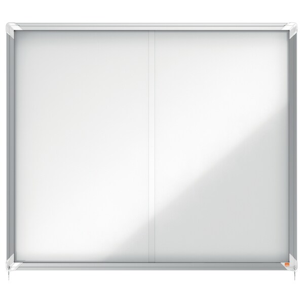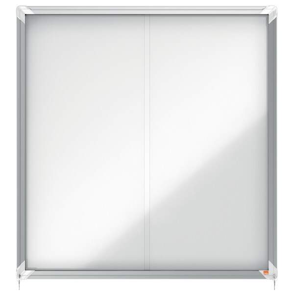 Nobo abschließbarer Schaukasten mit magnetischer Notiztafel, Praktische Schiebetüren, 27 x A4, Premium Plus, Weiß, 1902572
