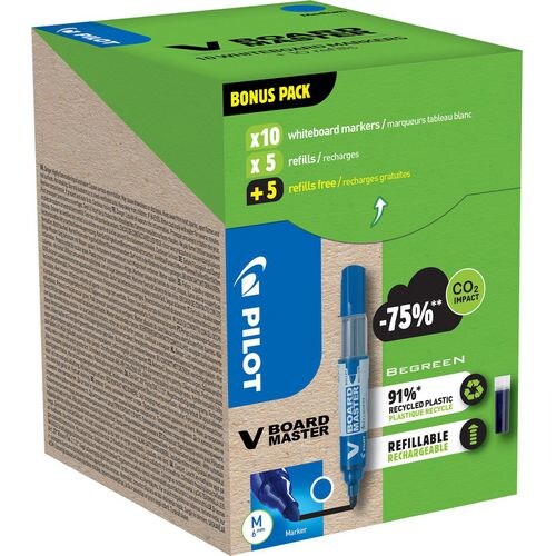 Pilot Non-permanent Whiteboard-Marker Blau Mittel Rundspitze - 80% Recycelt 20 Stück