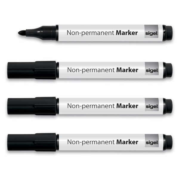 Sigel Non Permanent Marker sortiert 4er Pack, wasserlöslich, von Kunststoff-Oberflächen trocken und feucht abwischbar