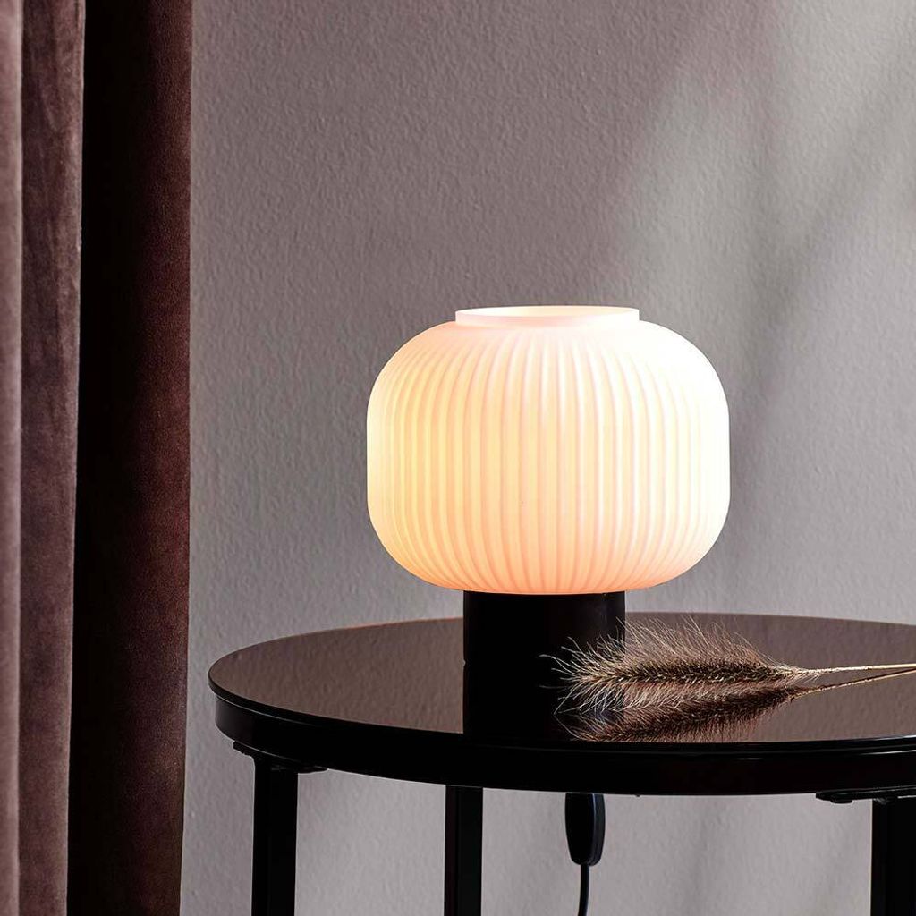 Nordlux Milford Tischlampe, E27, IP20, gerillte Oberfläche, Glas, schwarz-weiß (48965001)