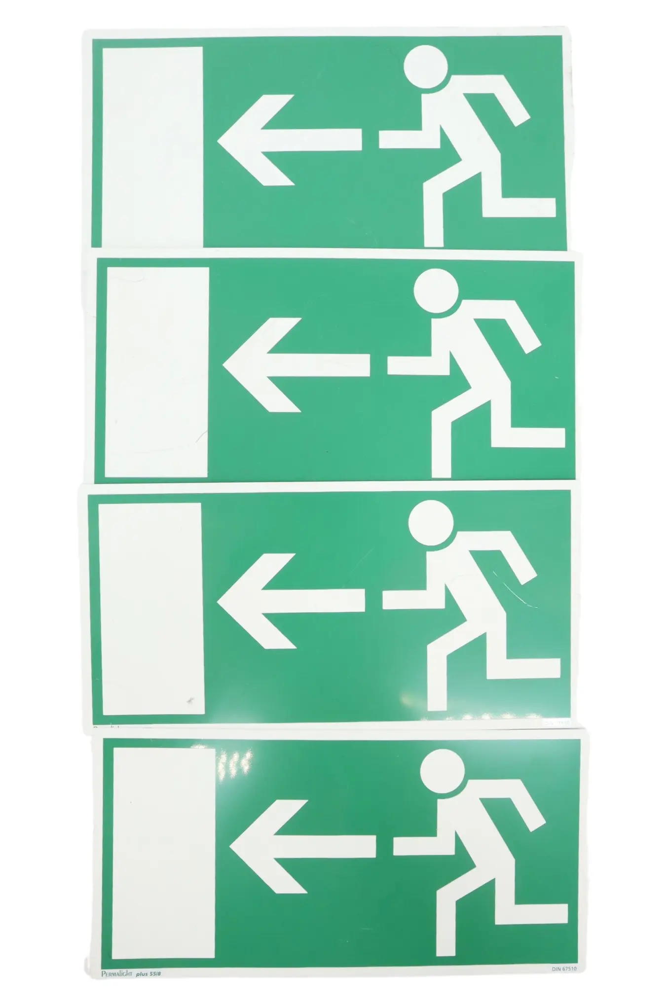 MARKENLOS 4x Notausgangsschild Fluchtweg Schild DIN 67510 nachleuchtend Grün Metall