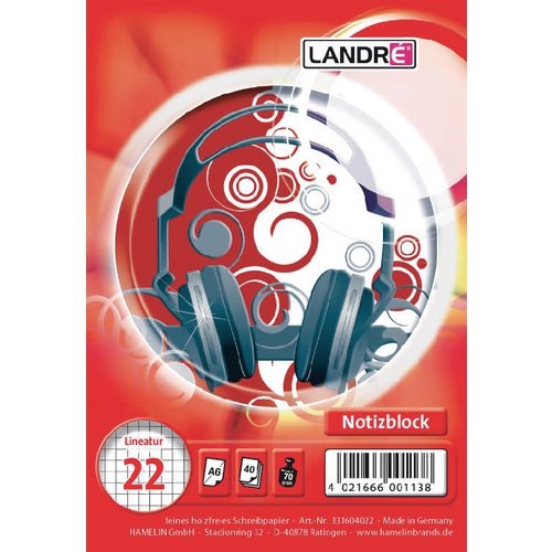 LANDRÉ Notizblock DIN A6 Kariert Spiralbindung Karton Rot Nicht perforiert 80 Seiten 40 Blatt