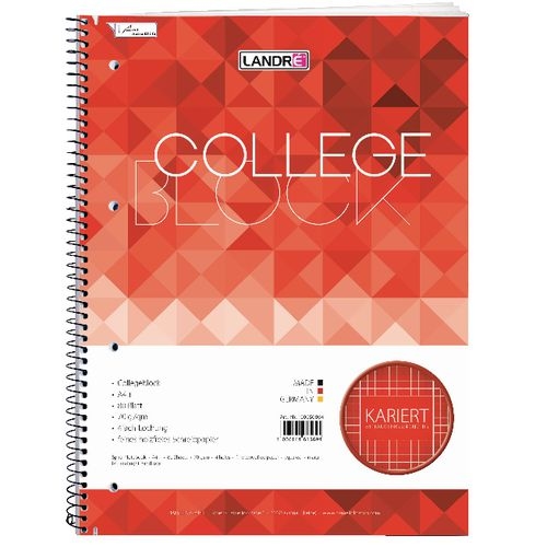 LANDRÉ Notizbuch DIN A4+ Kariert Spiralbindung Karton Perforiert 160 Seiten