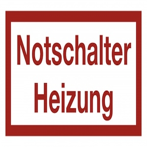 Notschalter Heizung, Textschild, Folie, 80x40 mm