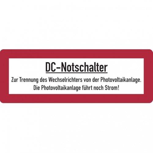 Dreifke Aufkleber | Feuerwehrschild, DC-Notschalter,74 x 210 mm, Folie - 210x74 mm Folie selbstklebend