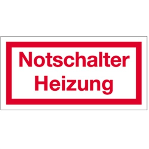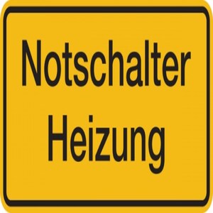 Hinweisschild Notschalter Heizung Kunststoff, 80x40 mm