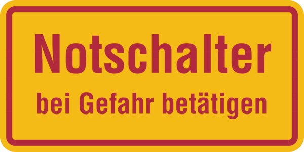 Hinweisschild, Notschalter bei Gefahr betätigen - 100x50x1.5 mm Kunststoff