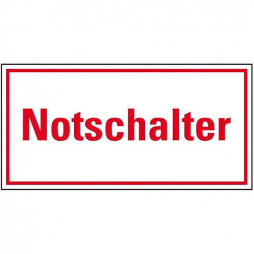 Hinweisschild, Notschalter, rot/weiß - 105x37 mm Folie selbstklebend