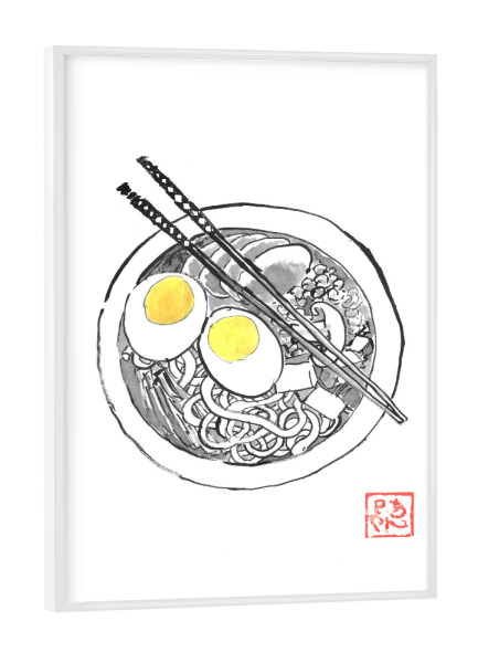 Poster mit weißem Rahmen "Ramen-Suppe" artboxONE - Essen & Trinken - Ramen,Suppe,Ei,Nudeln,Sumie,Japan
