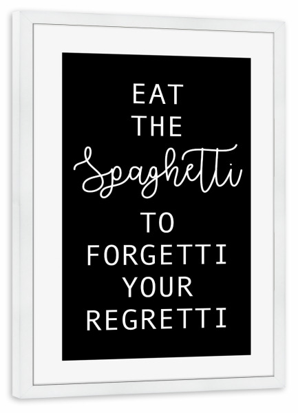 Poster mit Rahmen weiß "Eat the spaghetti - black" artboxONE - Typografie,Essen & Trinken,Schwarzweiß,Lustig - Italien,Nudeln,Spaghetti,Sorgen